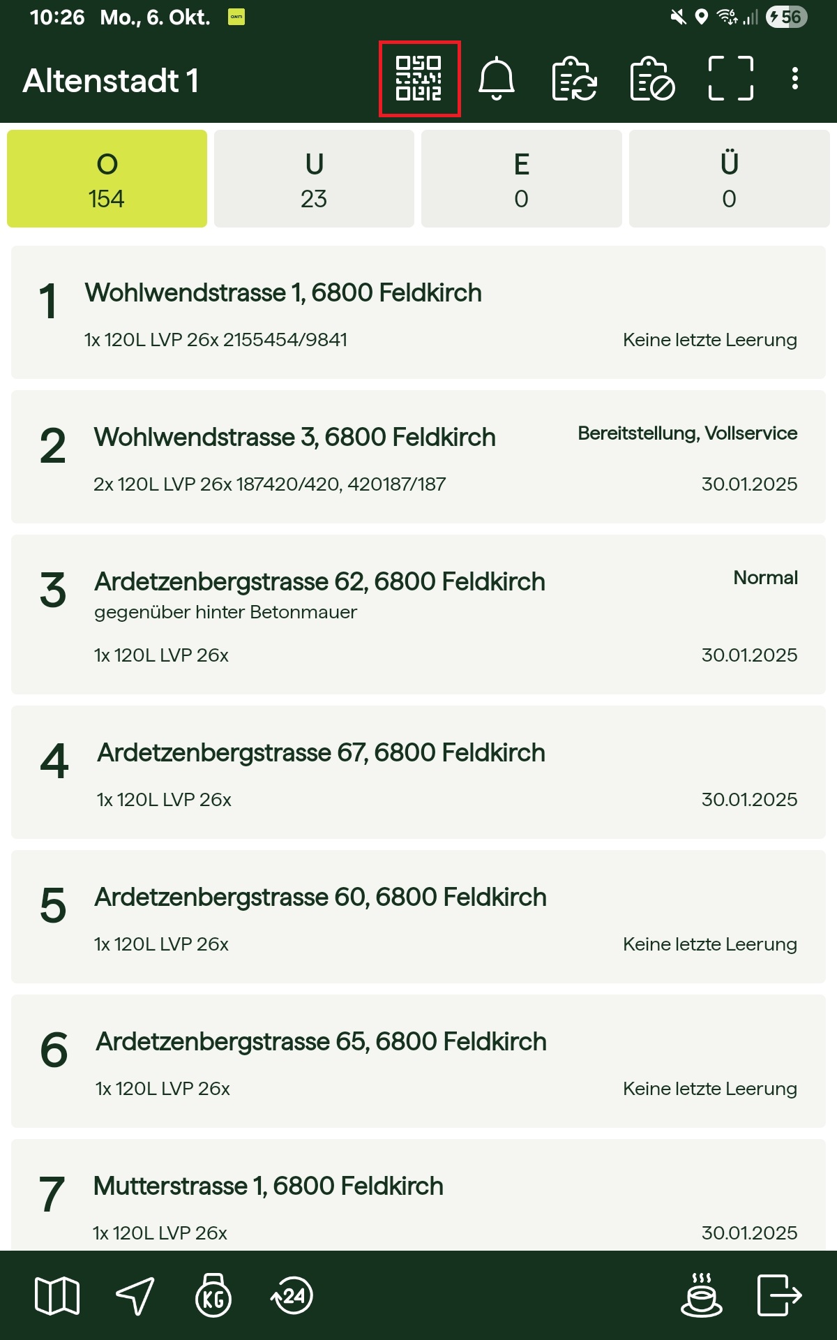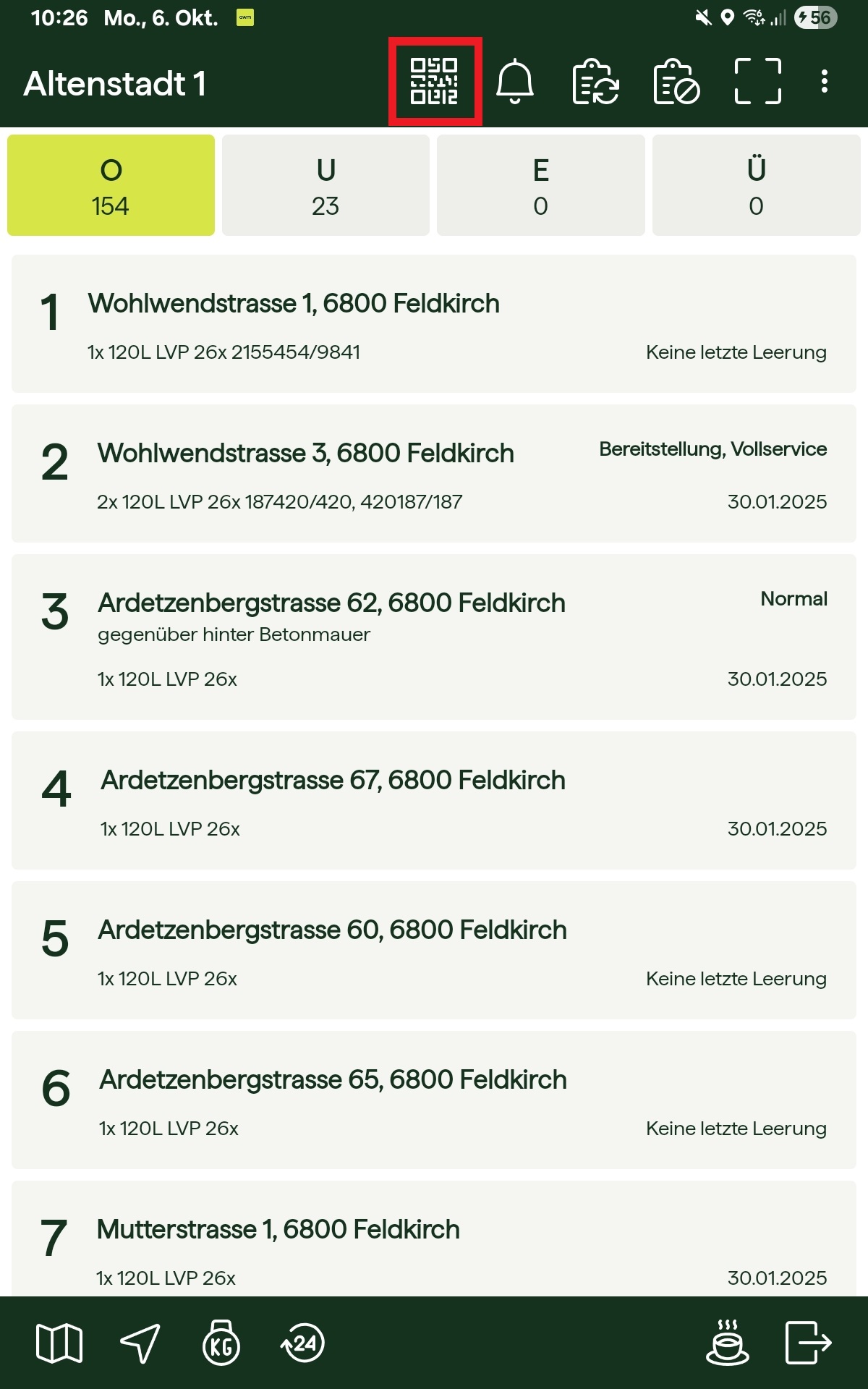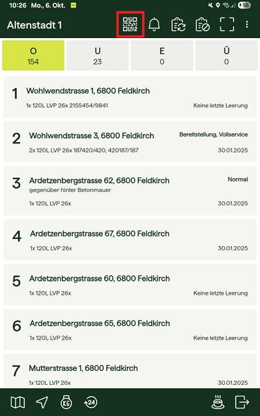 Leerung mit QR-Code erfassen
