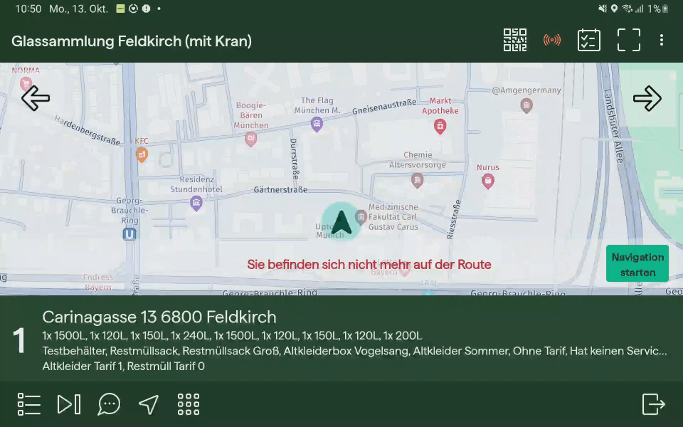 Mit dieser Funktion können Nutzer:innen direkt bis zur nächsten Kreuzung springen. In Routen ohne Sammelstellen erfolgt das Überspringen bis zur nächsten relevanten Abbiegeinformation sofern diese hinterlegt wurden. So wird die Bedienung deutlich effizienter und der Workflow beschleunigt.