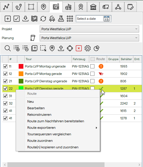 Routen bearbeiten in der Tourenplanung