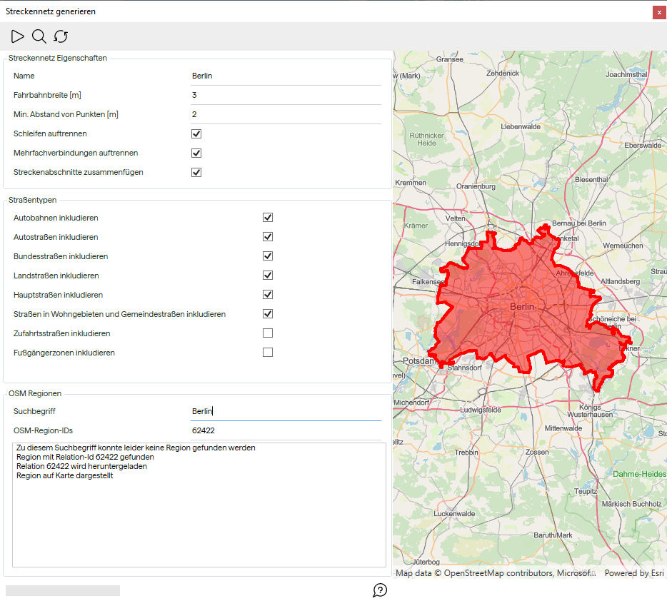- Es wird ein Dialog zur Generierung von Streckennetzen mit Overpass und OpenStreetMap angezeigt