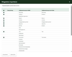 auswählen - Feld Wiegedatenimportiern auswählen.